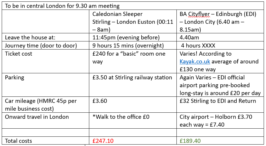 Less useful for me – the Caledonian Sleeper is much discussed on Scotland travel forums and is now more often than not sold out weeks in advance these days – less handy for last minute business trips.
