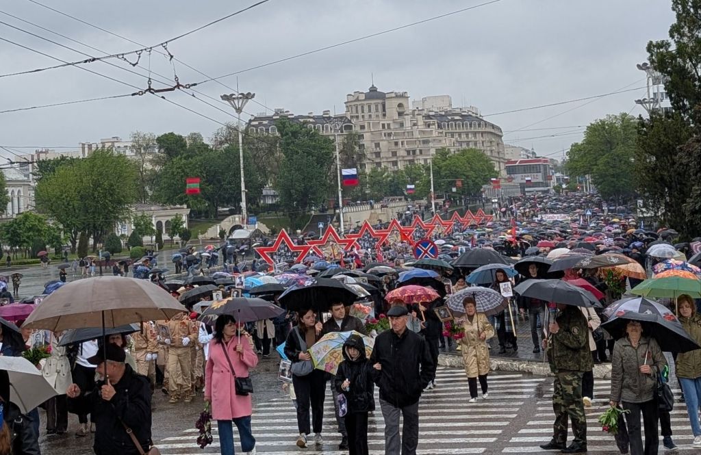 No tanks, missiles or particular fanfare. Just thousands of families braving the rain to lay flowers at the war memorials.