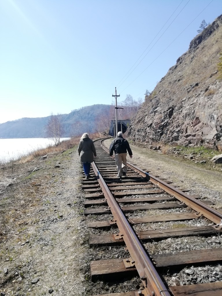 I had planned a swim in the lake but as it was still frozen, I decided against showing off my Scottish anti-freeze blood and blue-white legs and opted instead for a hydrofoil across the lake to where the Baikal to Amur railway snakes past the shore. To be clear, this train only runs in summer – I’m not advocating taking pictures on random train tracks!
